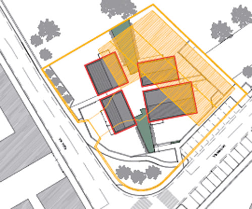 L’idea di “spaccare” l’edificio in quattro differenti corpi, rende permeabile il progetto, migliora l’integrazione con il contesto, apre visuali ricercate verso il parco e permette inoltre di distribuire gli spazi in modo da garantire ai futuri abitanti molta riservatezza, grazie all’indipendenza di ogni unità residenziale.