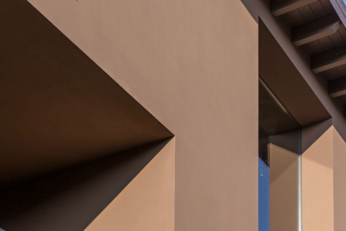 Il legame con il contesto morfologico e con le preesistenze è stato uno dei punti di partenza fondamentali del progetto; l’architettura, infatti, è stata ricostruita seguendo le linee guida dell’edificio esistente, enfatizzando alcuni elementi tradizionali tipici: il tetto a falda, le travi a vista e il porticato, e inserendo delle contaminazioni più contemporanee a contrasto.