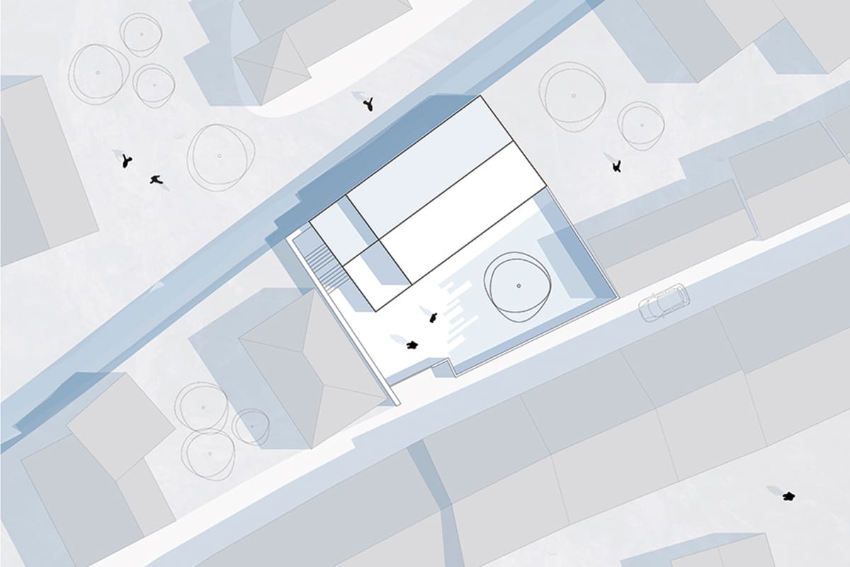 Nel complesso la nuova architettura definisce un atteggiamento di empatia con il contesto esistente, andando a ripristinare sia la tipologia abitativa che la localizzazione del precedente edificio, soltanto in una veste più contemporanea.
