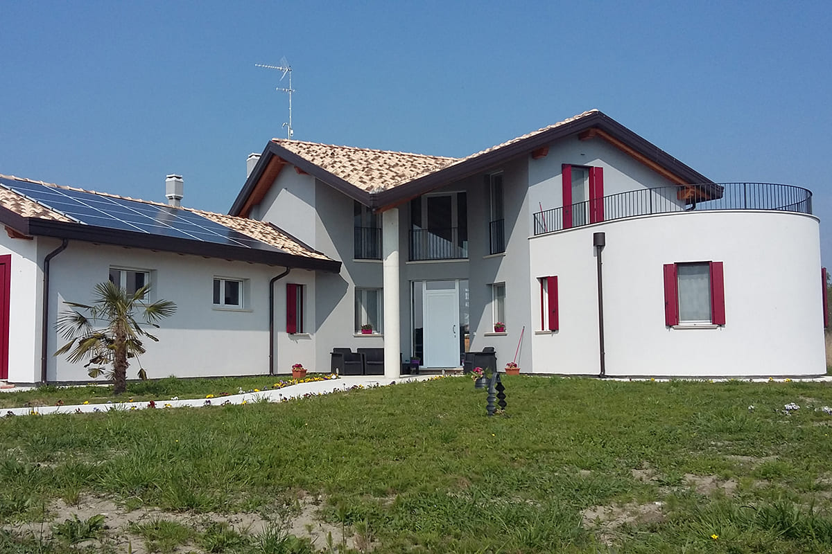 Per il riscaldamento, il raffrescamento e l’acqua calda sanitaria è stato adottato un sistema misto, costituito da caldaia a condensazione, termostufa a pellet e pompa di calore inverter, il tutto collegato ad uno scambiatore con accumulo, al sistema radiante a pavimento e agli split a parete per il raffrescamento.