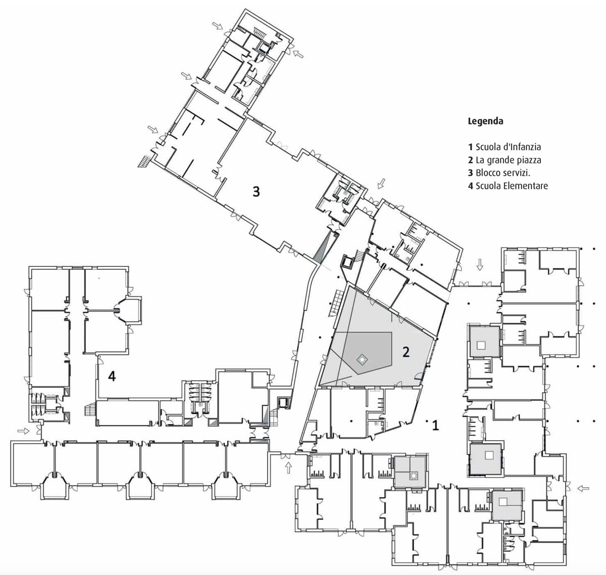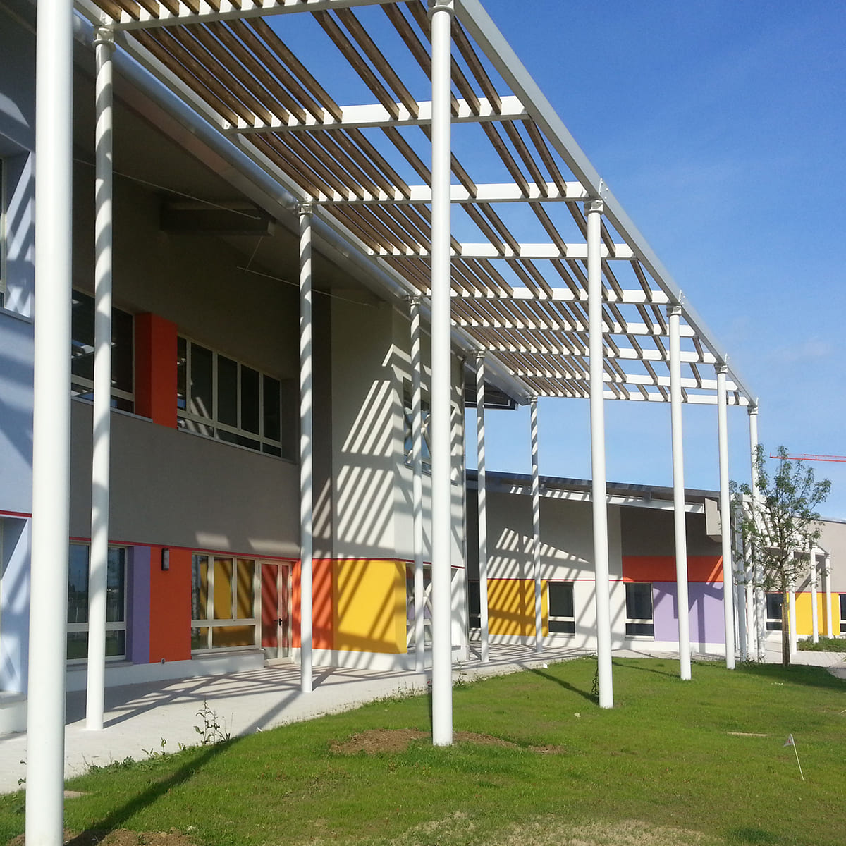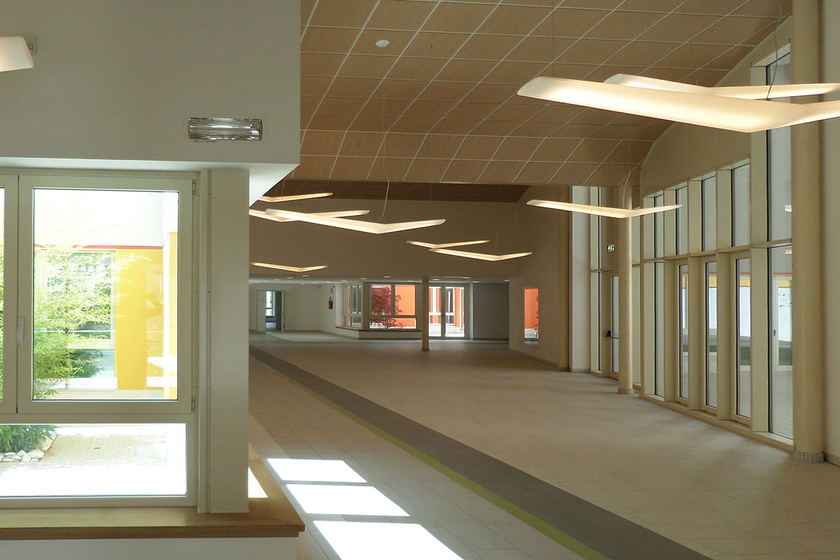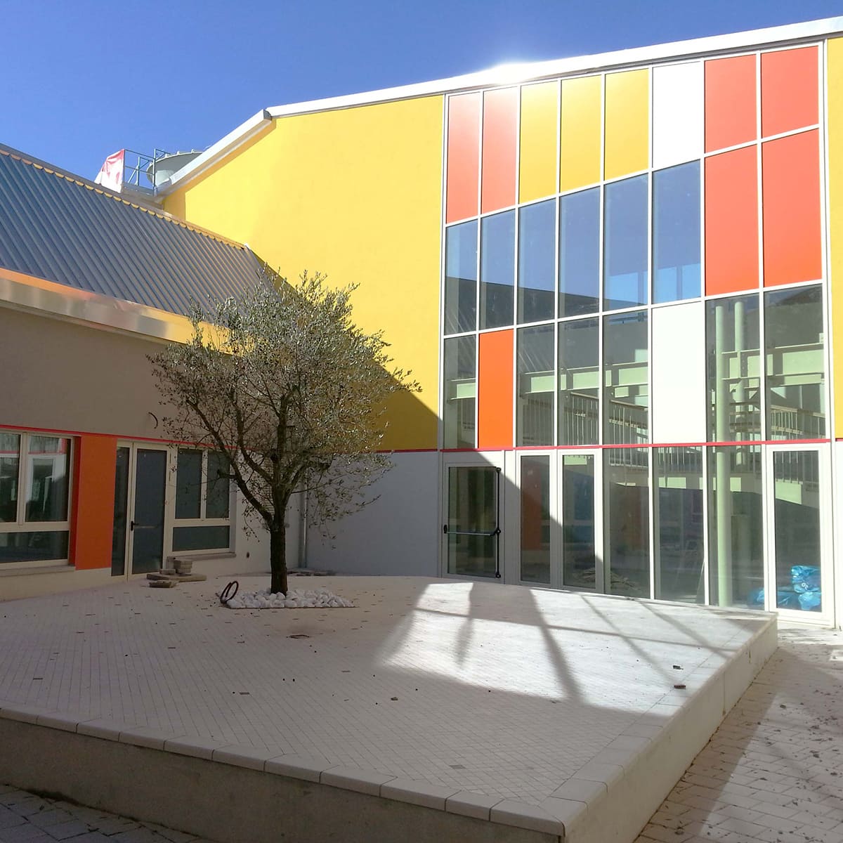 Il nuovo complesso scolastico, che comprende una scuola d’infanzia e una scuola elementare, si trova in una zona strategica, con l’intento di diventare un punto di riferimento per la comunità e favorire la riqualificazione del quartiere circostante. È il risultato di un progetto interdisciplinare che, ha dato priorità al benessere dei bambini e degli operatori didattici, con un’attenzione particolare alla sicurezza, all’acustica, alla luce naturale, alla ventilazione e alla flessibilità degli spazi.