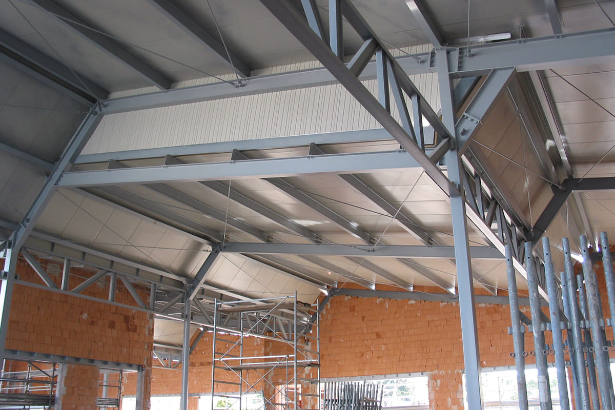 La struttura portante è costituita da una fondazione in platea e un telaio in acciaio, con solai e copertura leggeri, supportati da pilastri e travi di dimensioni contenute.