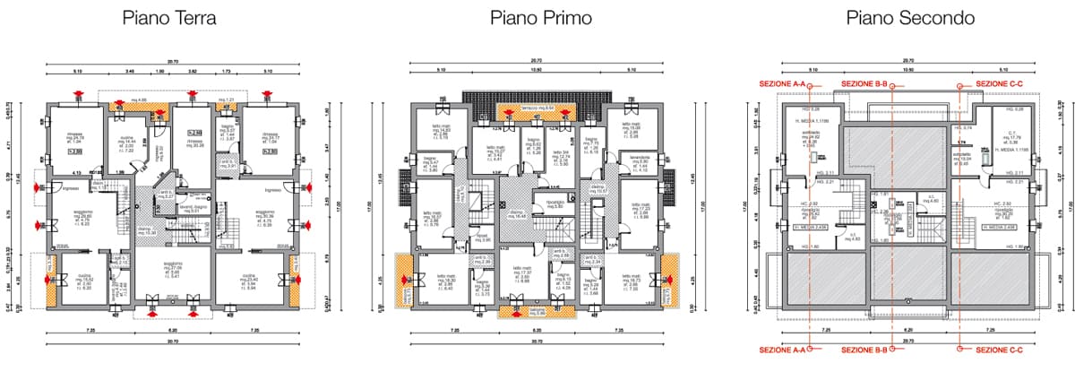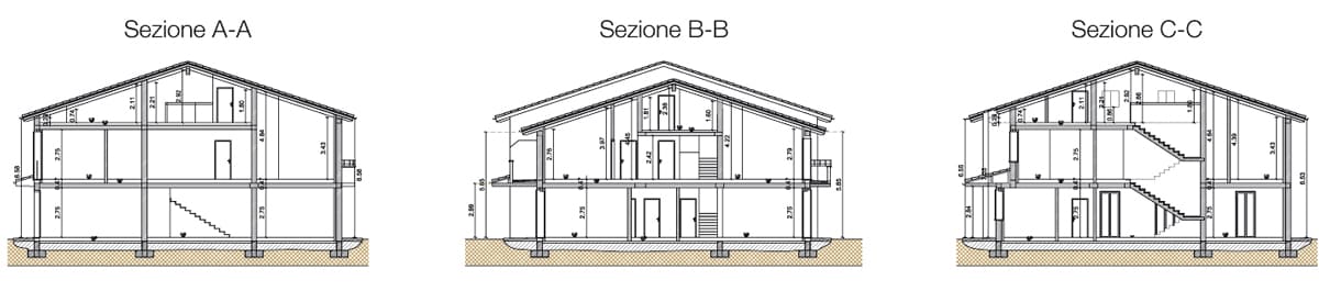 Il fabbricato, di due piani fuori terra, presenta una struttura è costituita da fondazioni a travi rovesce, muratura portante armata in blocchi POROTON®, pilastri in c.a. per sostegno statico, solai infinitamente rigidi e copertura in legno non spingente, ancorata ai cordoli con angolari metallici.