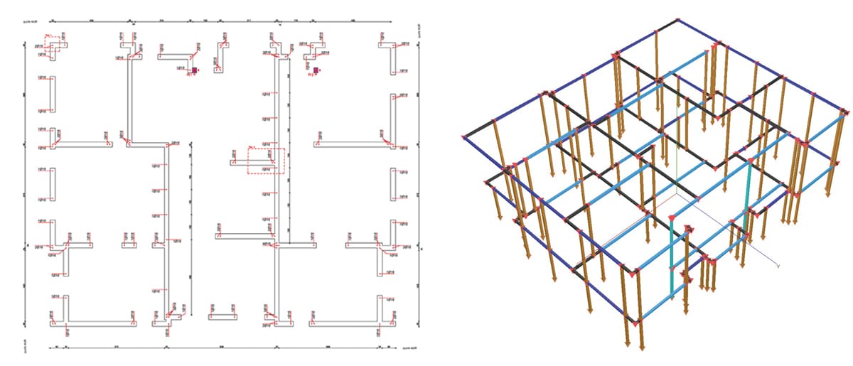 La modellazione dell’edifico è stata eseguita mediante software di calcolo agli elementi finiti. L’effetto stabilizzante nei confronti delle azioni orizzontali è assicurato dal comportamento scatolare dell’edificio, grazie alla presenza delle pareti in muratura armata, a cui è richiesto di sopportare l’intera azione sismica, ed al buon ammorsamento realizzato fra di esse e i solai.