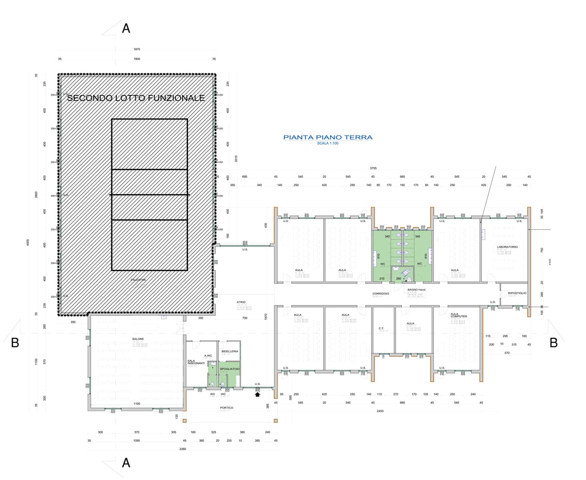 La nuova scuola ha sostituito il vecchio plesso scolastico, realizzato a metà degli anni trenta, che presentava criticità dal punto di vista sismico e impiantistico. Il disegno dell’edificio è un alternarsi di pieni e di vuoti che traducono in pianta il sistema scolastico nella sua dinamicità.