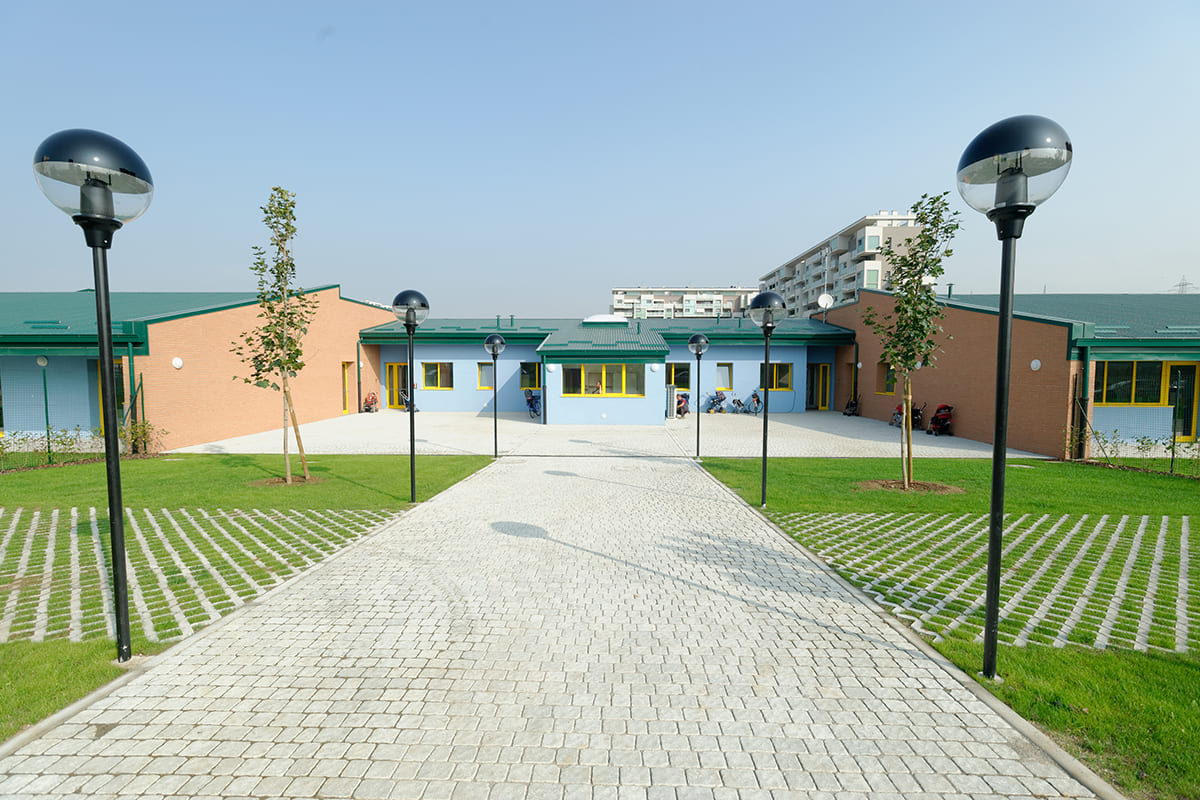 L’edificio, a Castel Gandolfo (RM), è il risultato della ristrutturazione di un complesso destinato in parte ad opificio per la lavorazione dei derivati dall’estrazione dell’olio di oliva e in parte a residenza: il fabbricato, composto da quattro corpi di fabbrica a forma di parallelepipedo, rispetta la sagoma del vecchio immobile.
