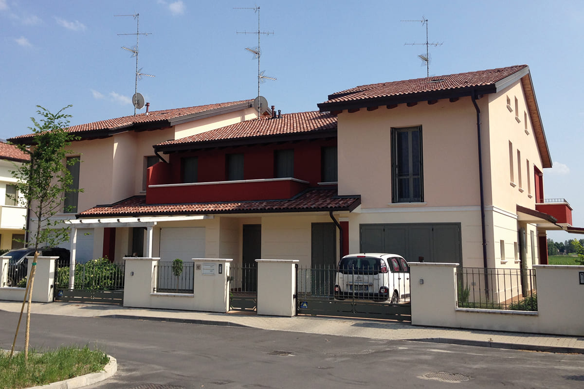 Il progetto ha previsto la costruzione di diverse tipologie di fabbricati a uso residenziale: un fabbricato plurifamiliare di quattro appartamenti, uno bifamiliare e unità singole indipendenti con una scansione completamente isolata o di tipo bifamiliare o a schiera.